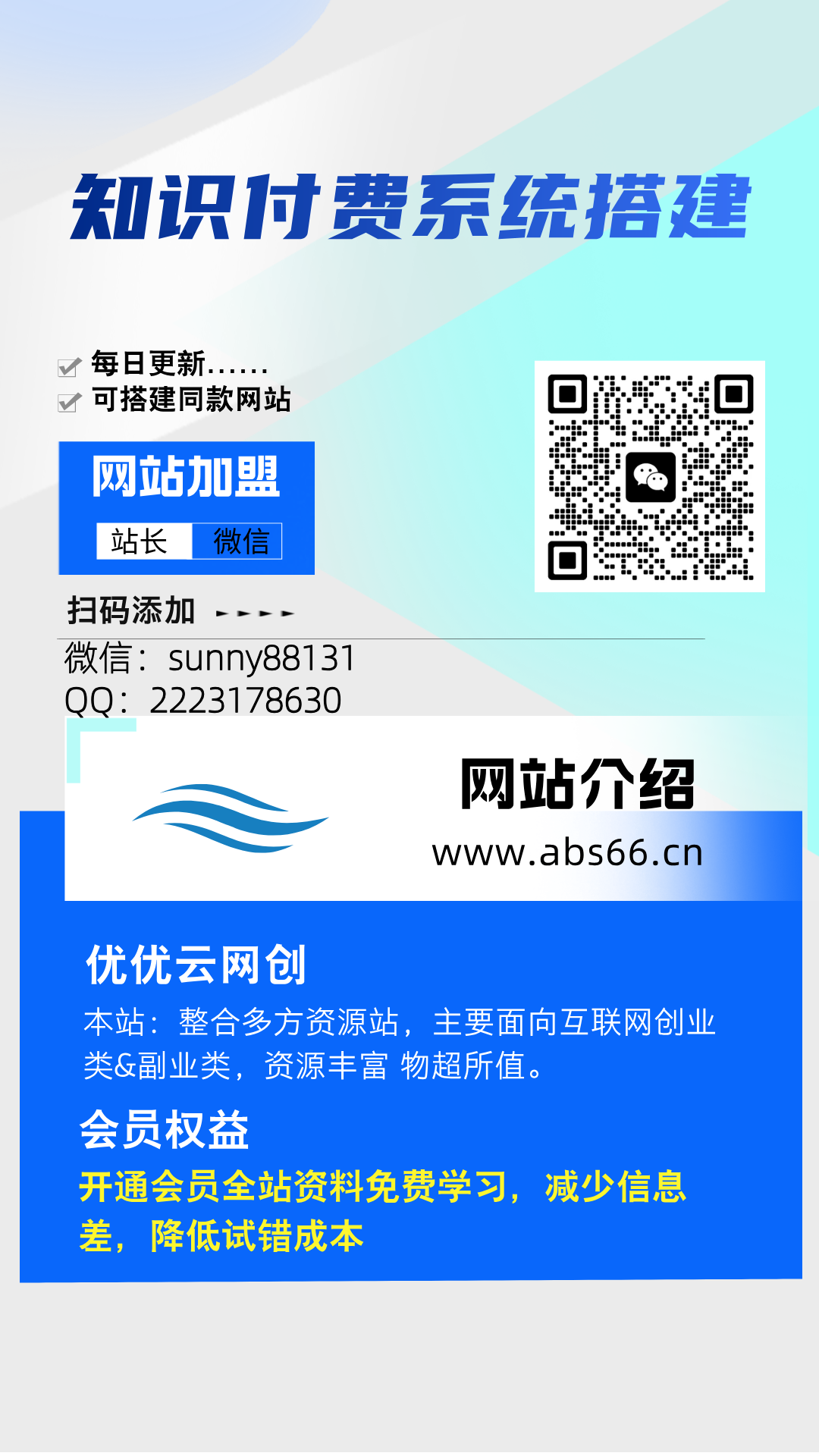 加盟XXX网创,加盟搭建同款知识付费资源网站,实现长期稳定被动收入~